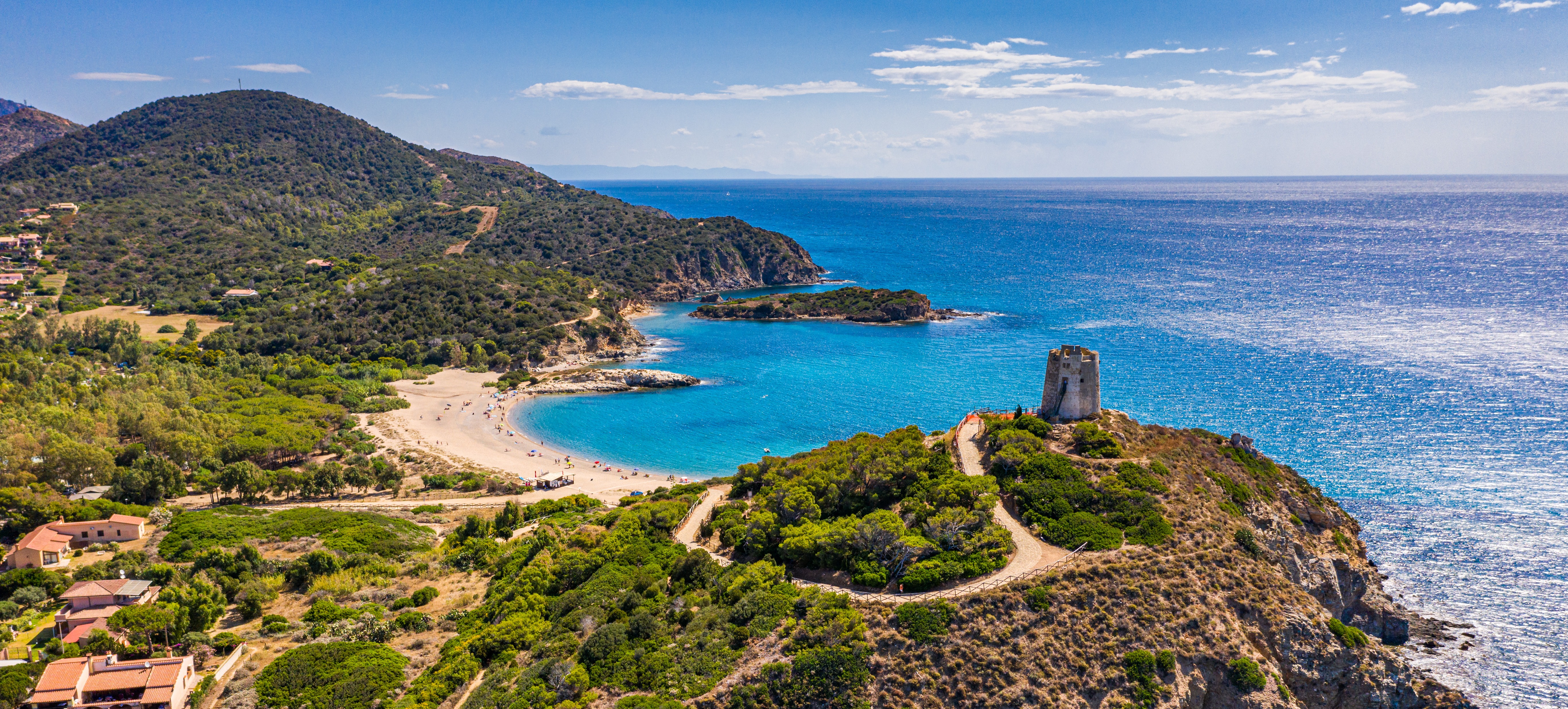 Westlich von Cagliari beeindruckt die Küste rund um Chia mit weiten Sandstränden, Dünenlandschaften und kristallklarem Wasser. Die Buchten sind offen, weitläufig und bieten echtes Südsardinien-Feeling – naturbelassen, ruhig und überraschend vielseitig.